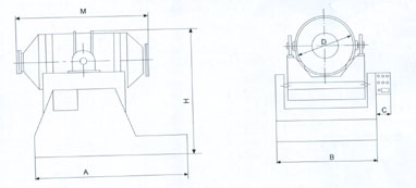 筒为圆柱形料筒,筒内不带任何搅拌装置,在绕其对称轴作自转的同时,又绕水平轴作“可倒置”摇摆运动,从而迫使料筒内的物料既有扩散混合又有移动混合。该机混合时间短,混合均匀度高,多功能可以粉碎混合同时进行。